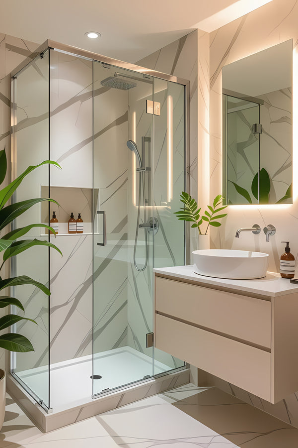 So much storage! Perfect for at least 4-5 Costco size Pantene shampoo/conditioner bottles when installed horizontally. Love the durable waterproof material and how pretty it looks after tiled!