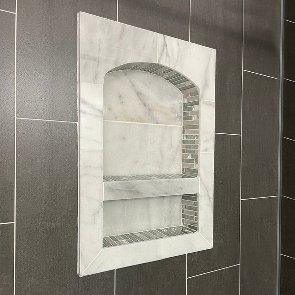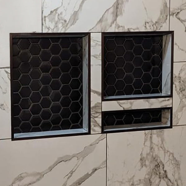Bought 2 of these during bathroom remodeling. We probably looked at another 4 or 5 different ones but these were the best. They looked really big just holding up to the wall, but once installed and filled in with tile they are perfect. Room for some big tall shampoos and body wash bottles and then a smaller area for soaps, etc.